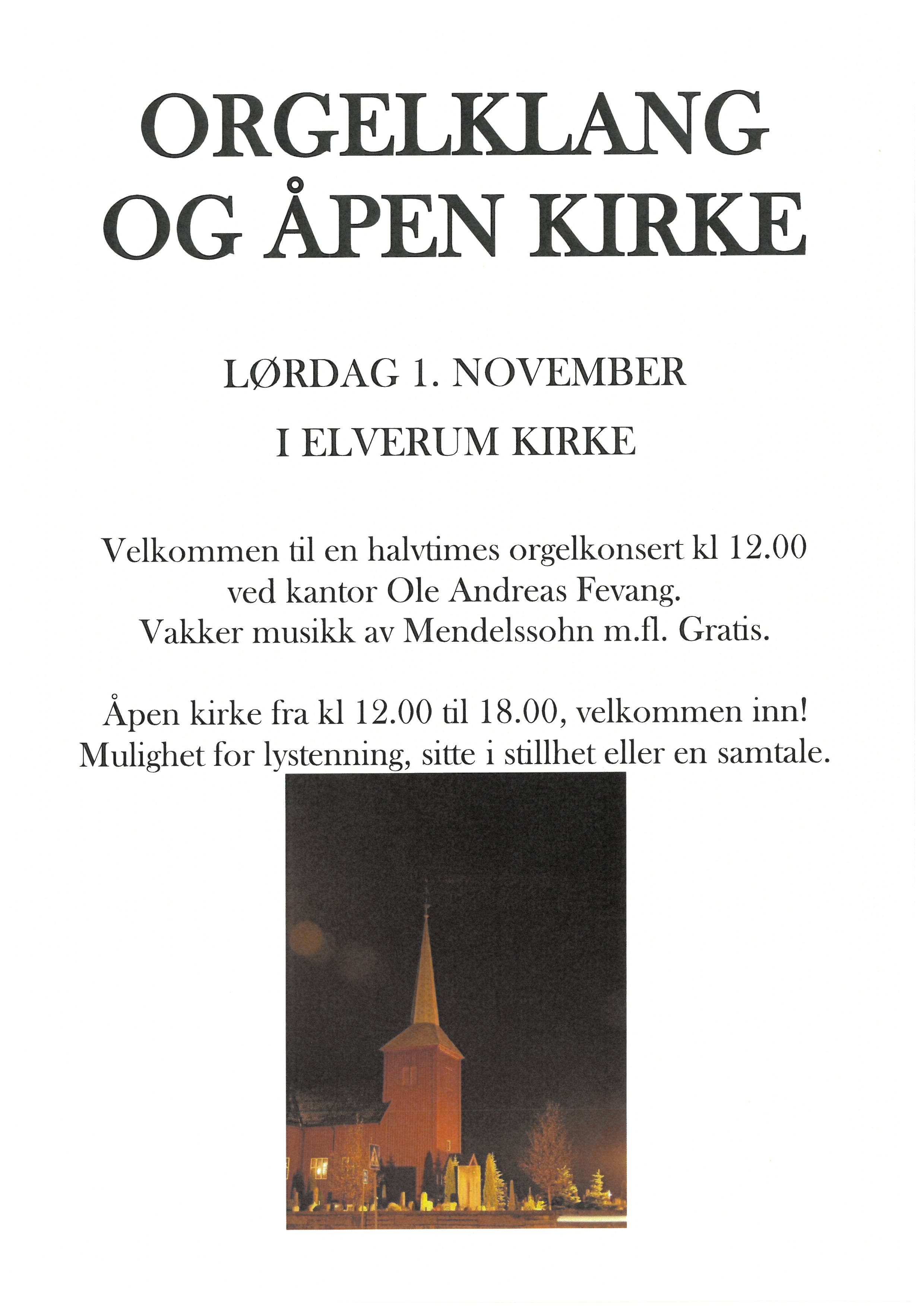 Elverum kirke lørdag 1. november fra kl. 12:00-18:00