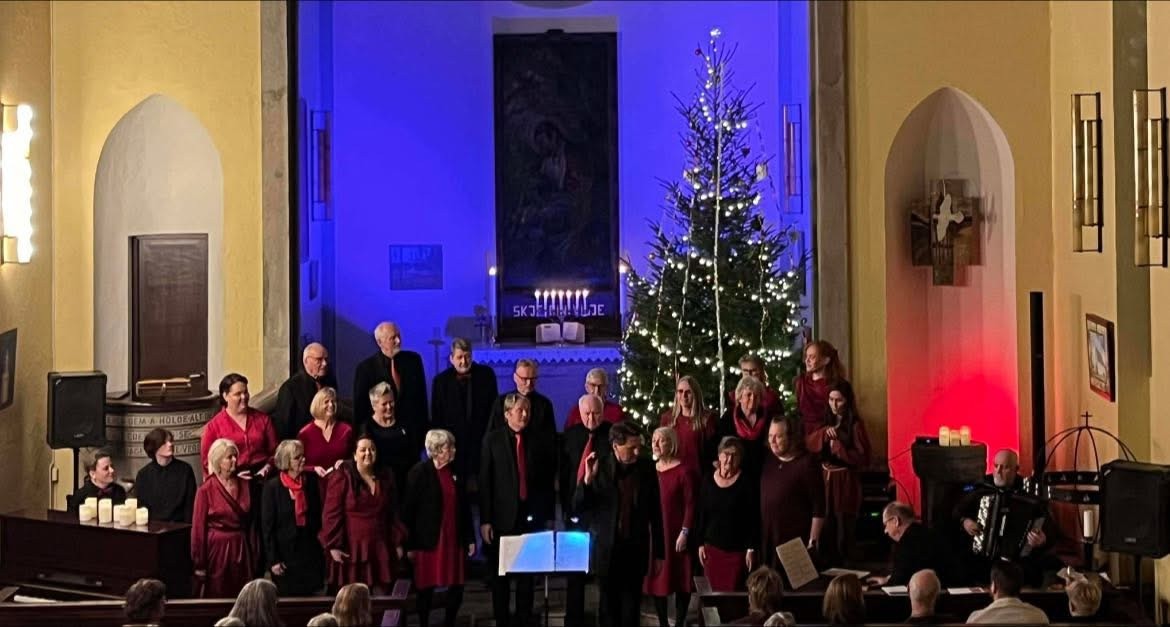 Hernes korforening med dirigent Erland Dalen synger "Julen är hãr" fra Hernes kirke