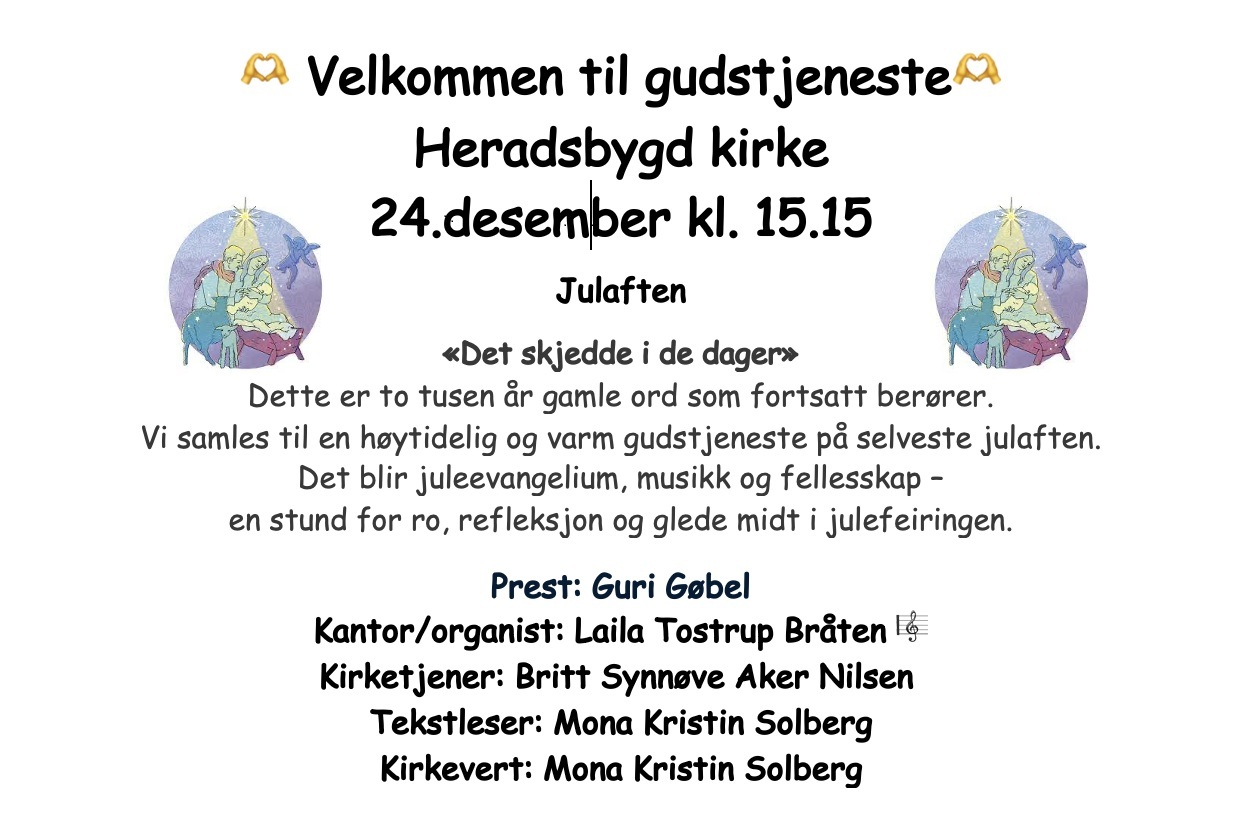 Julaften er gudstjenesten flyttet til kl. 15:15 i Heradsbygd kirke